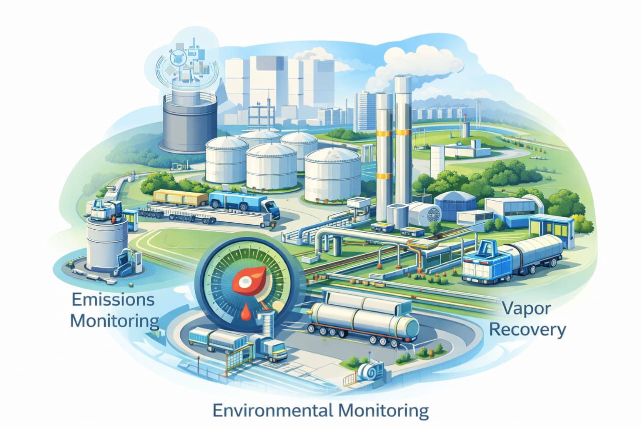 Through advanced leak detection systems, vapor recovery technology, and automated monitoring platforms, the terminal maintains high environmental standards while delivering operational reliability.