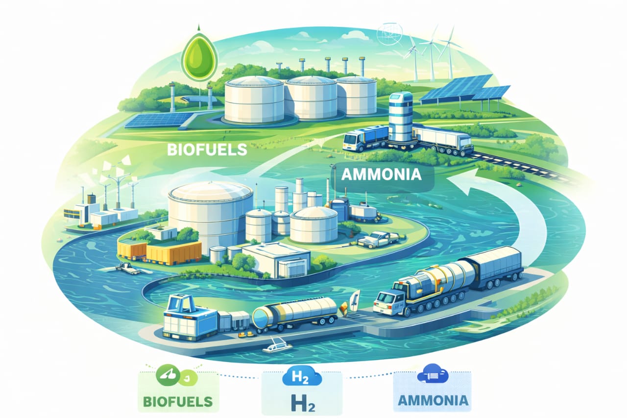 Infrastructure development supporting biofuels, hydrogen, ammonia and other low-carbon fuels.